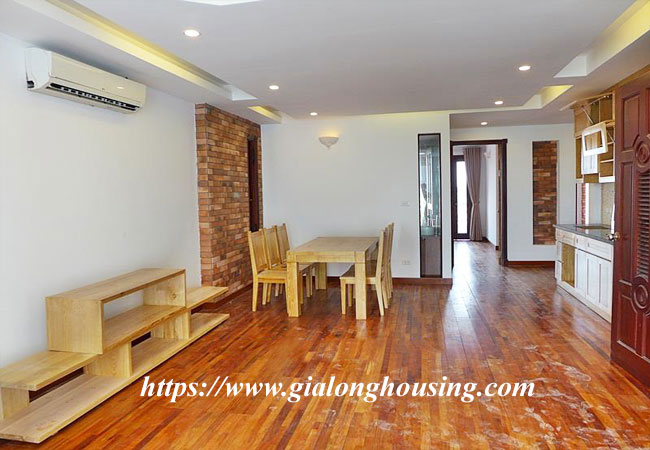 This brand new apartment is located in a quiet lane where you can walk to the West lake, shopping center and restaurants. The total area is 100 sq m, including 02 bedrooms and 02 bathrooms. The whole apartment is bright and nice due to big windows and nice balcony. The rent is included: cable TV, wireless internet, tap water.