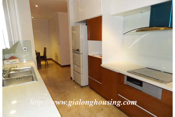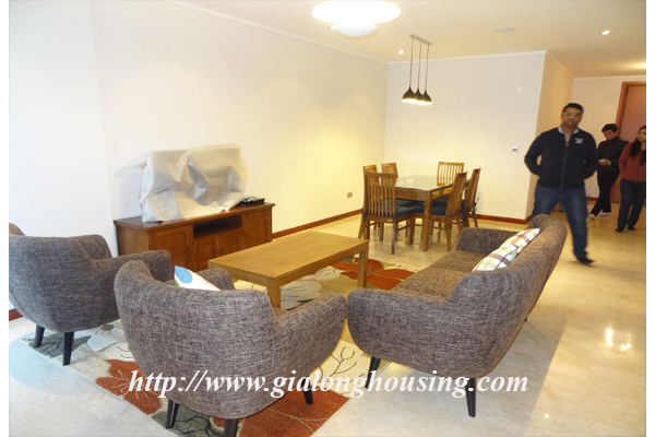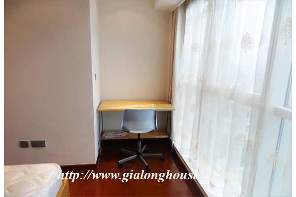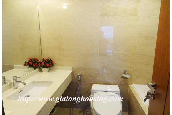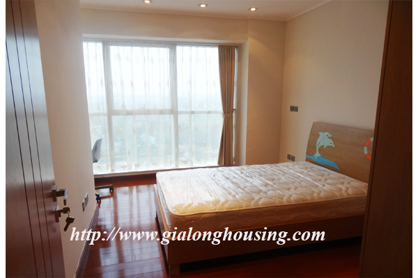 A nice three bedrooms apartment for rent in L1 Block, Ciputra, Hanoi. The living area is 114 sqm combining 3 bedrooms, 2 bathrooms with standing shower cabin and bathtub, separated laundry area.The apartment is designed mixed floor between wood and marble make it more modern