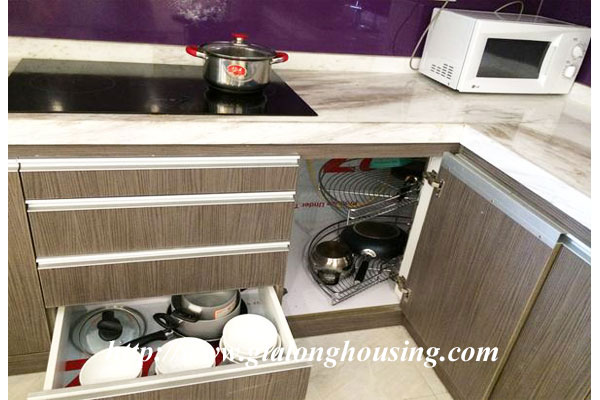 This is a very nice apartment in new building of Royal City complex. The total area of this apartment is 110 sq m with 02 bedrooms and 02 bathrooms. The apartment was carefully designed and provided full furniture. The whole apartment gets lot of natural light from large glass windows and balcony.